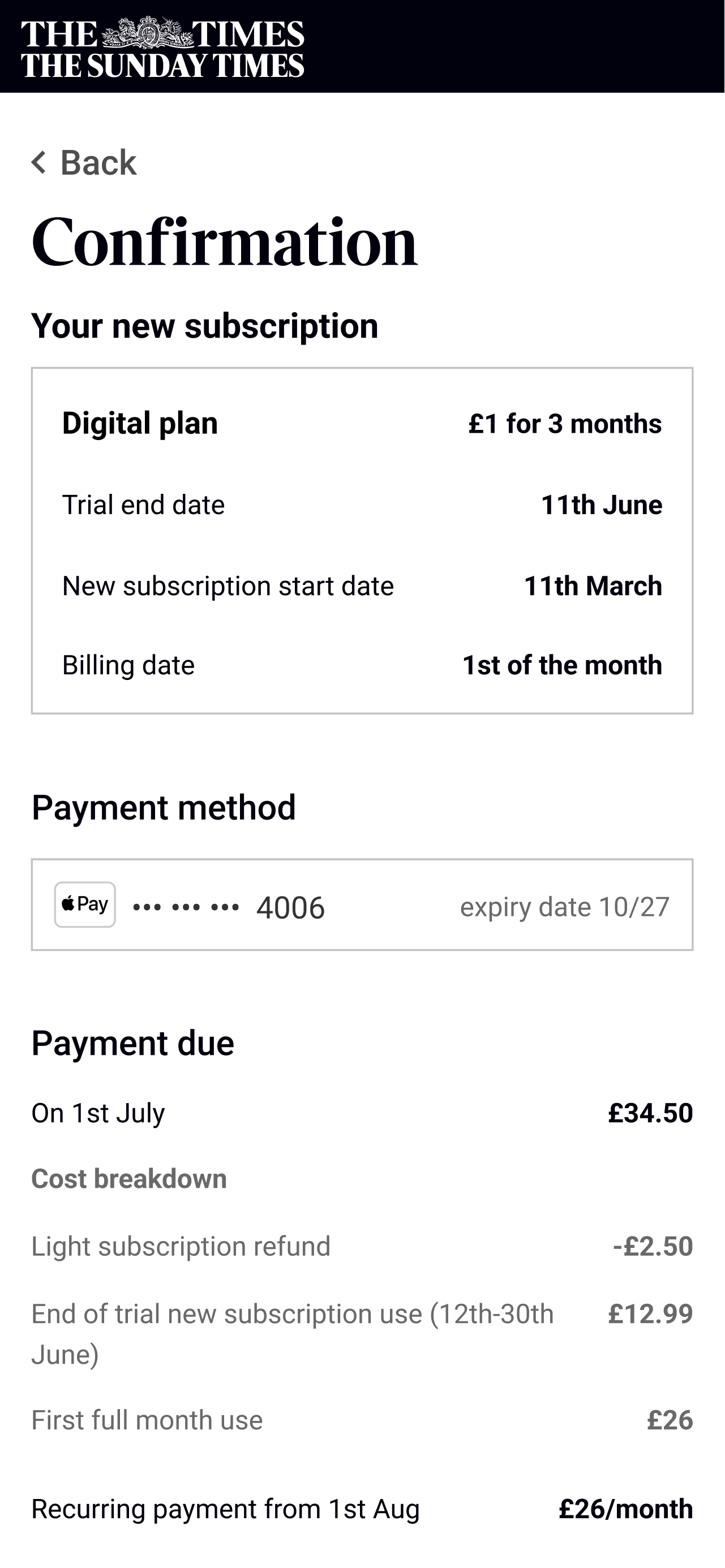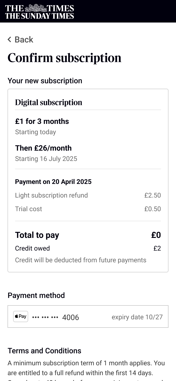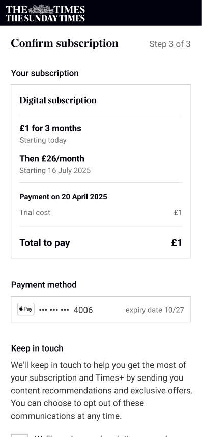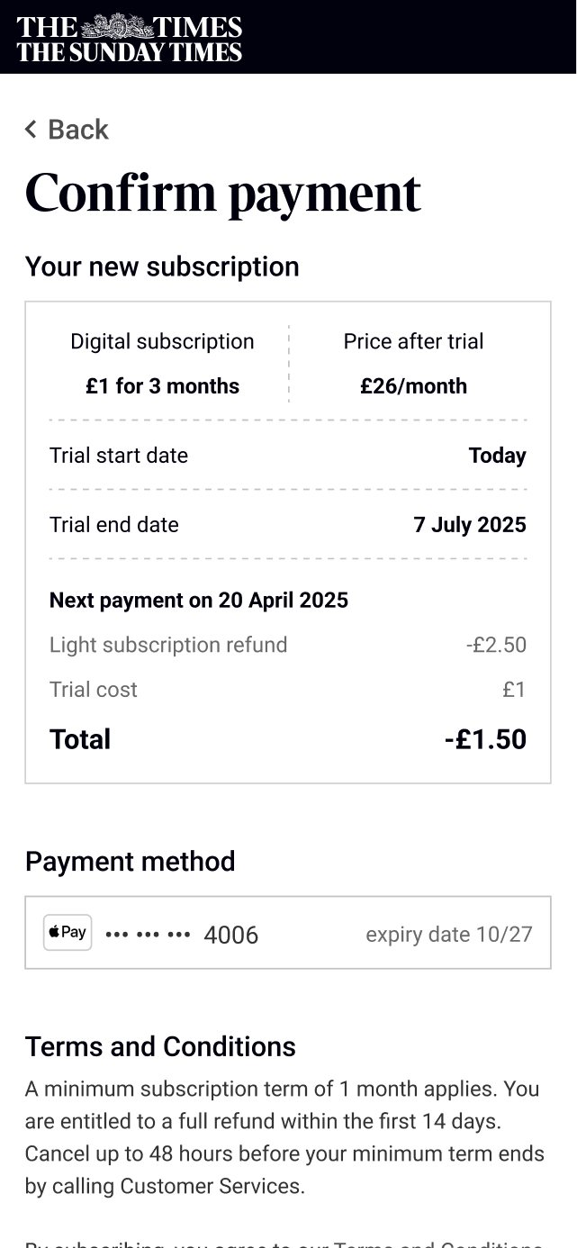 I led the redesign of The Times' subscription architecture and upgrade experience over 4 months, working as the sole product designer responsible for research, UI, and content design. The aim of this project was to allow the marketing team from creating new subscription by rebuilding how features work and create the opportunity to increase revenue by encouraging users to upgrade with an online upgrade journey and gating features.